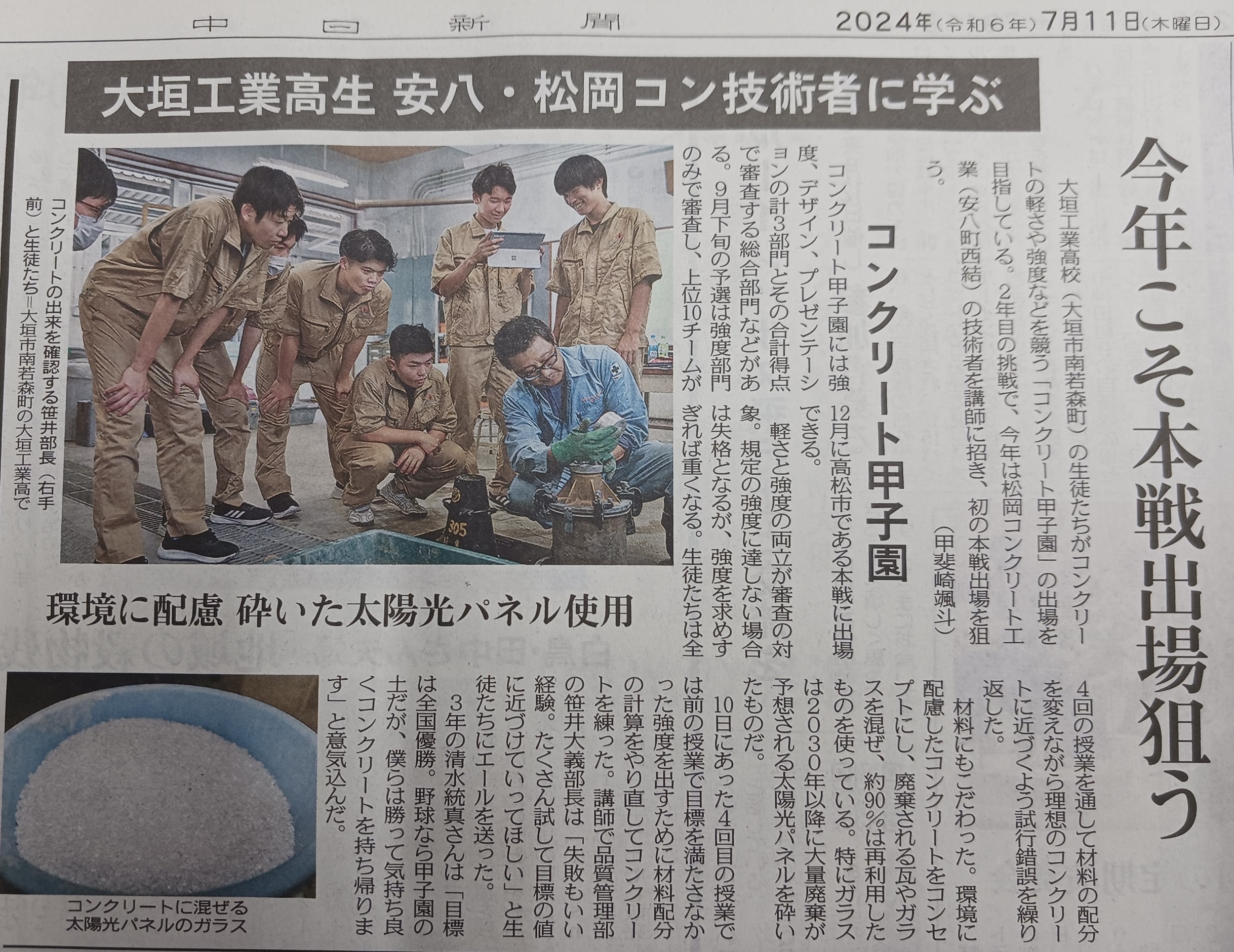 大垣工業高校の生徒への技術指導が中日新聞に掲載されました。